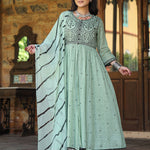 Green & Black Cotton Embroidered Anarkali Dress With Jacket & Tie-Dye Dupatta