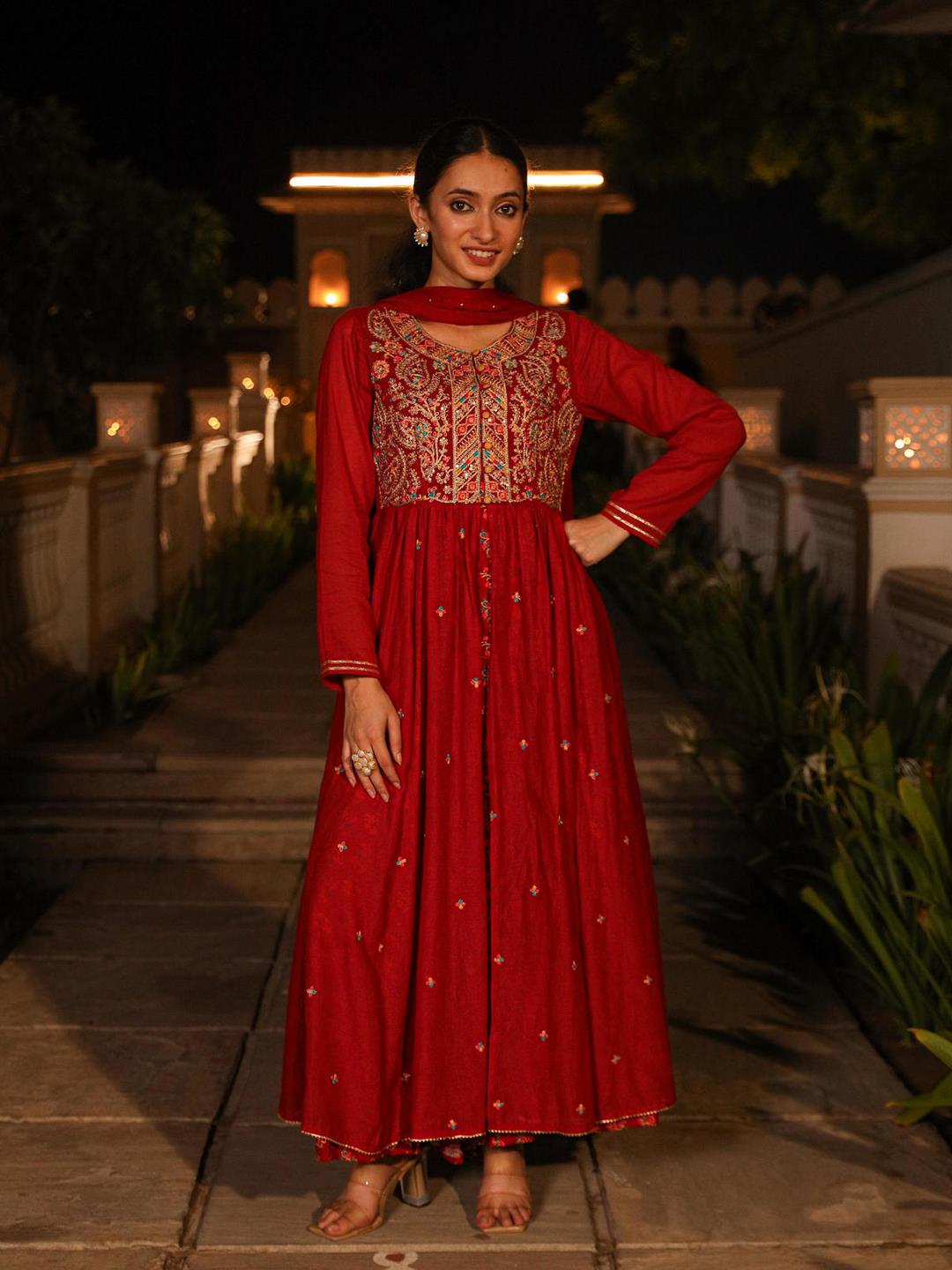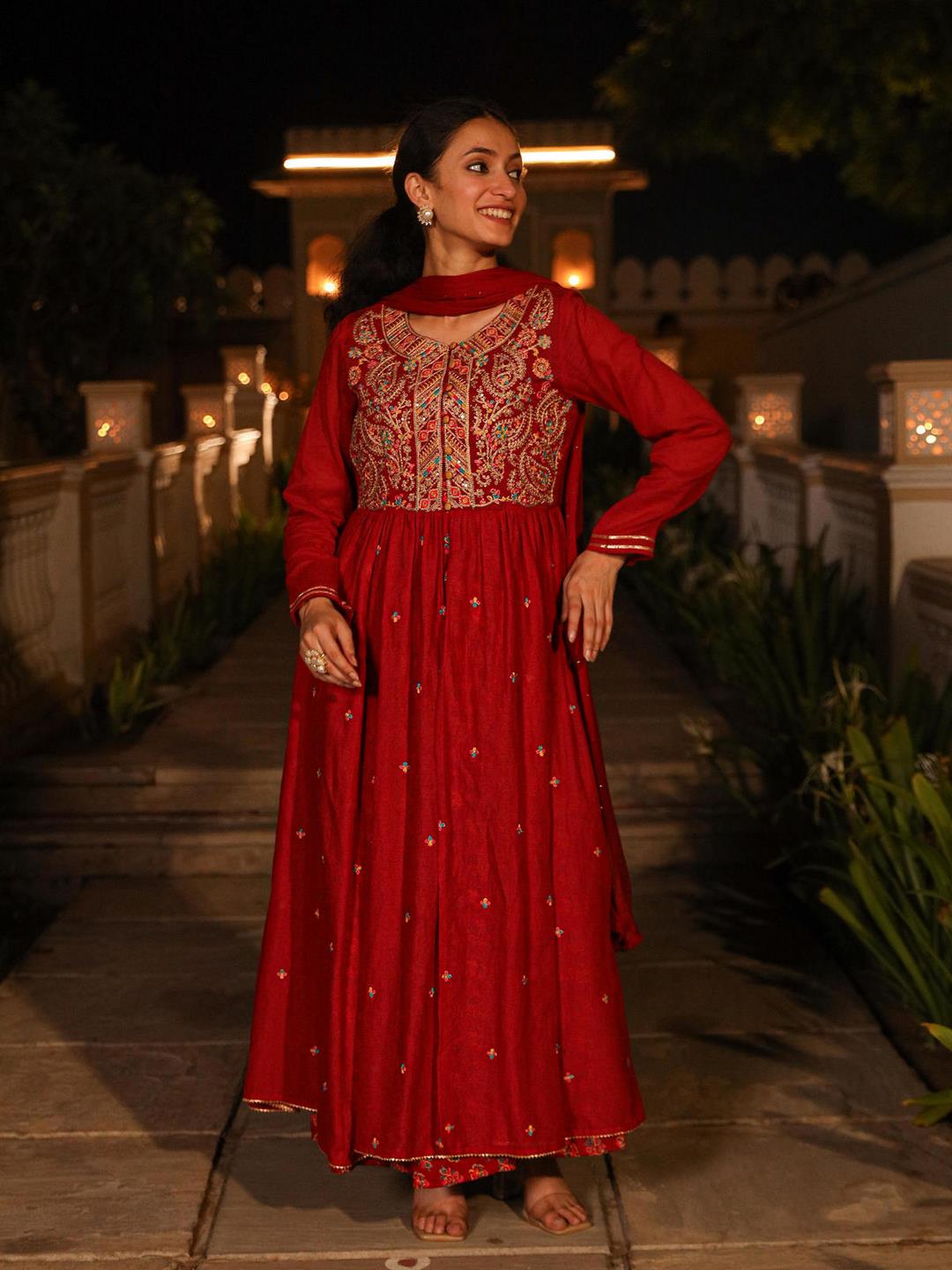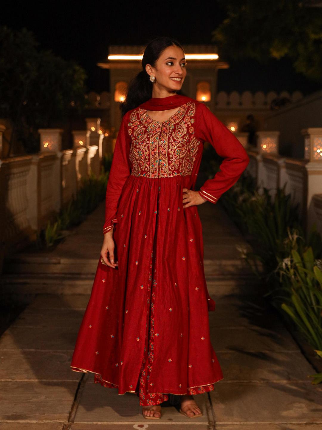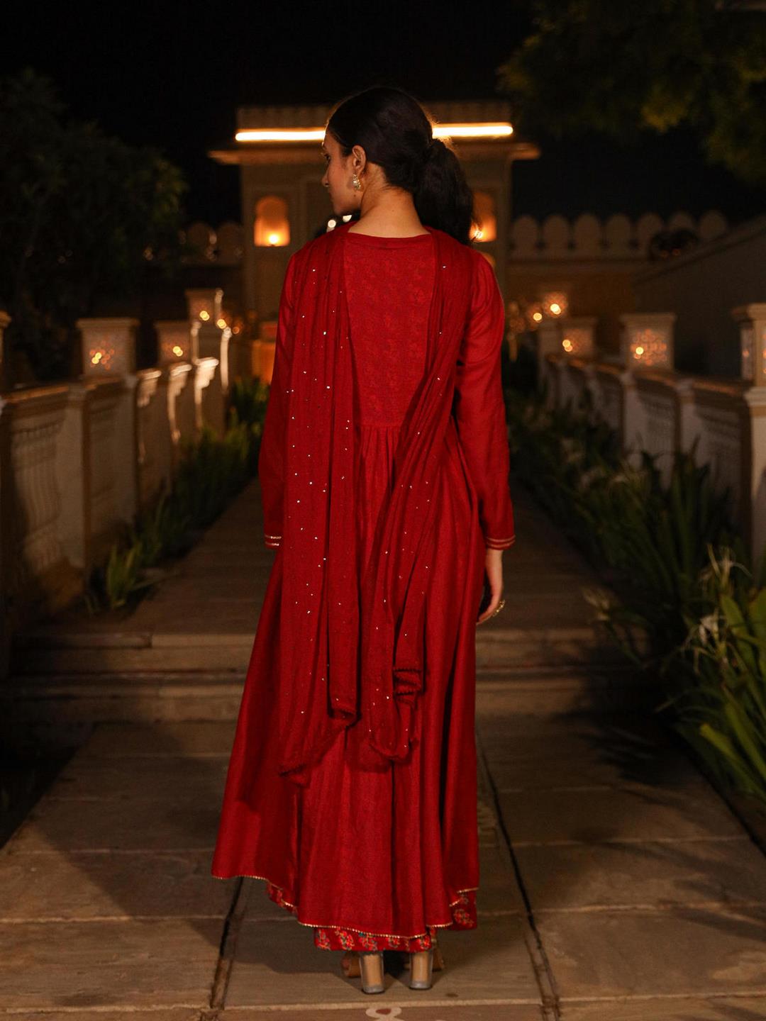 The Mastani Maroon Ethnic Motif Printed Cotton Shrug Inner & Dupatta Set With Sequins Mirror & Thread Work