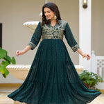Green Floral Printed Georgette Dress With Sequins
