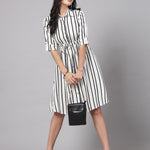 3/4 sleeves & Shirt CollorRayon Stripes Print Dress