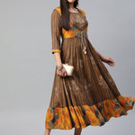Brown Color Rayon Fabric Panelled Gown
