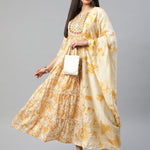 Mustard Color Cotton Fabric Tiered Gown With Dupatta
