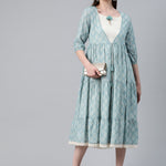 Blue Color Cotton Fabric Tiered Dress With Jacket