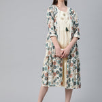 Cream Color Cotton Fabric Tiered Dress With Jacket