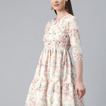 Multi Color Cotton Fabric Tiered Dress