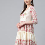 Pink & Cream Color Cotton Fabric Tiered Dress
