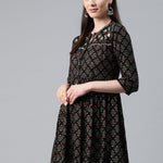 Black Color Rayon Fabric Gathered Dress