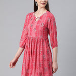 Pink Color Rayon Fabric Gathered Dress