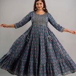 Printed Pure Cotton Embroidered Round Neck 3/4 Sleeves Ankle Flared Kurta