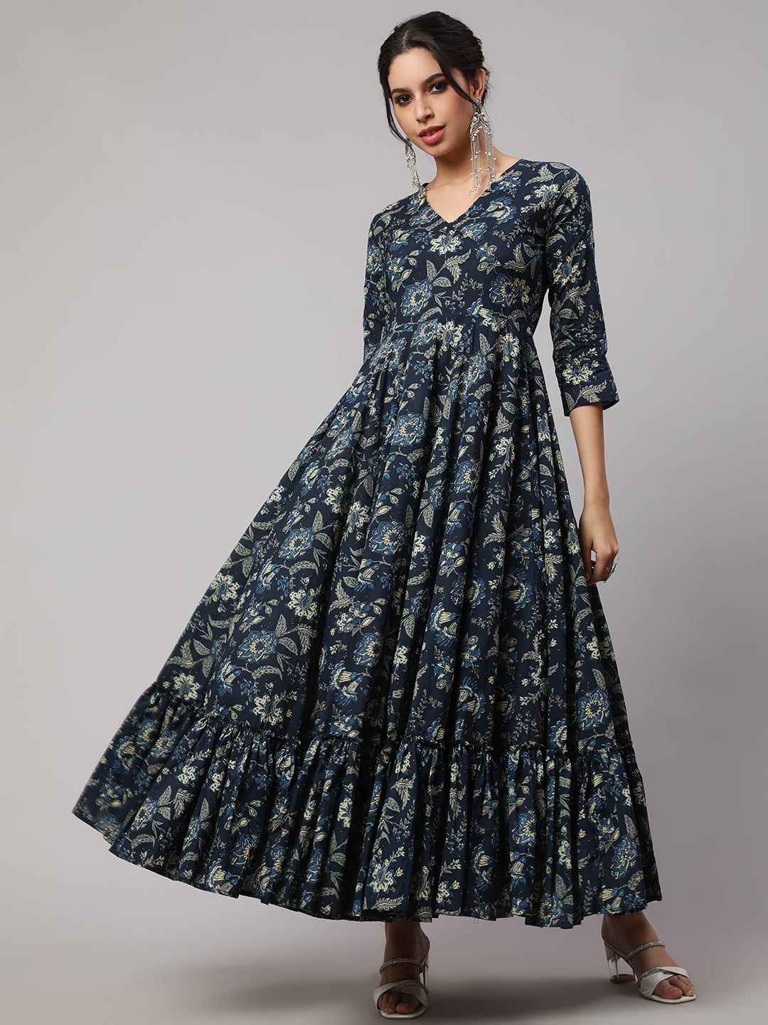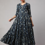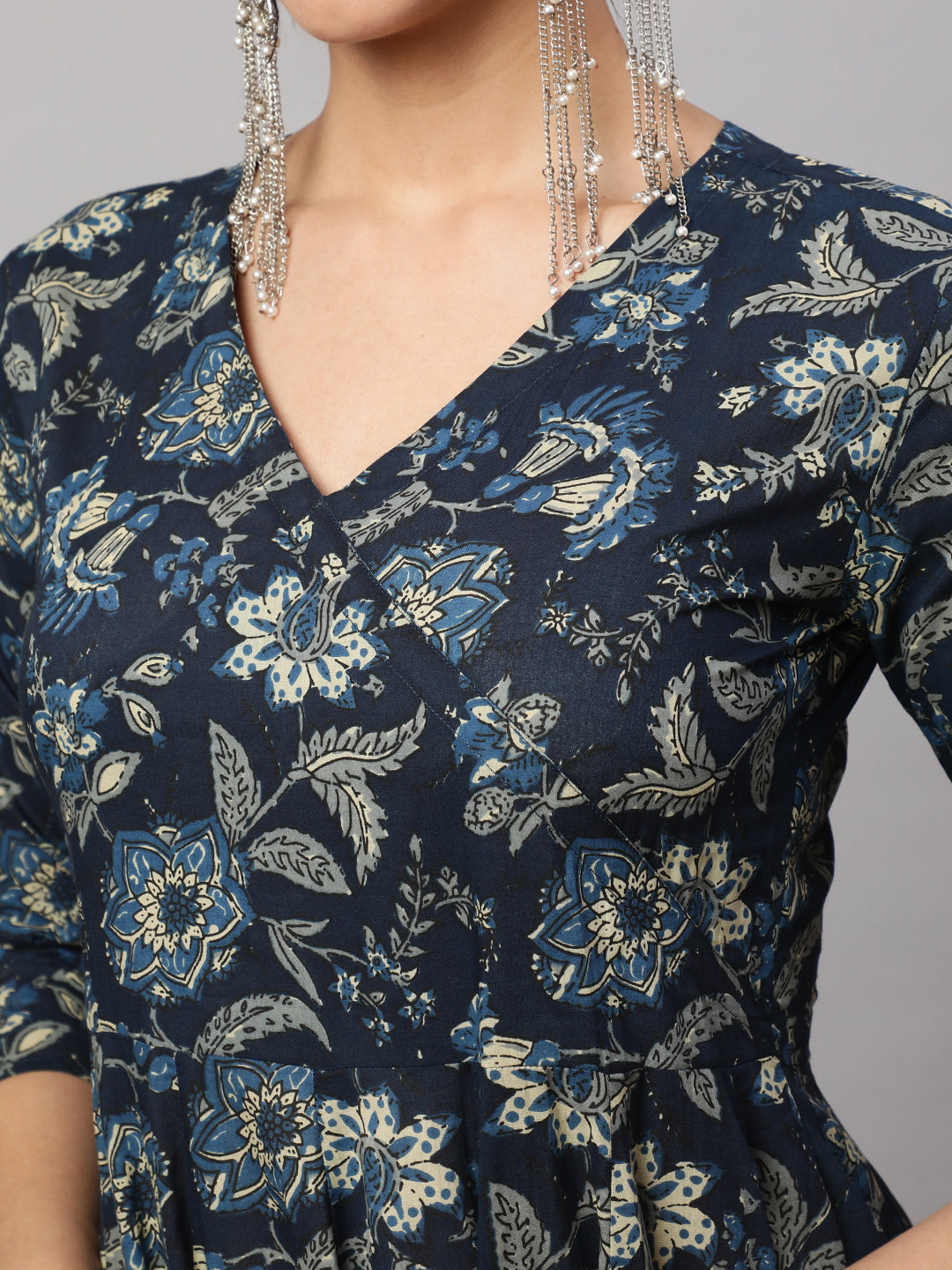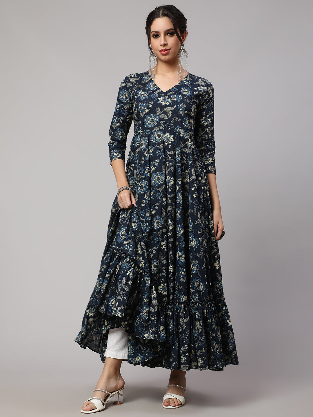 Floral Print V-Neck Flared Kurta
