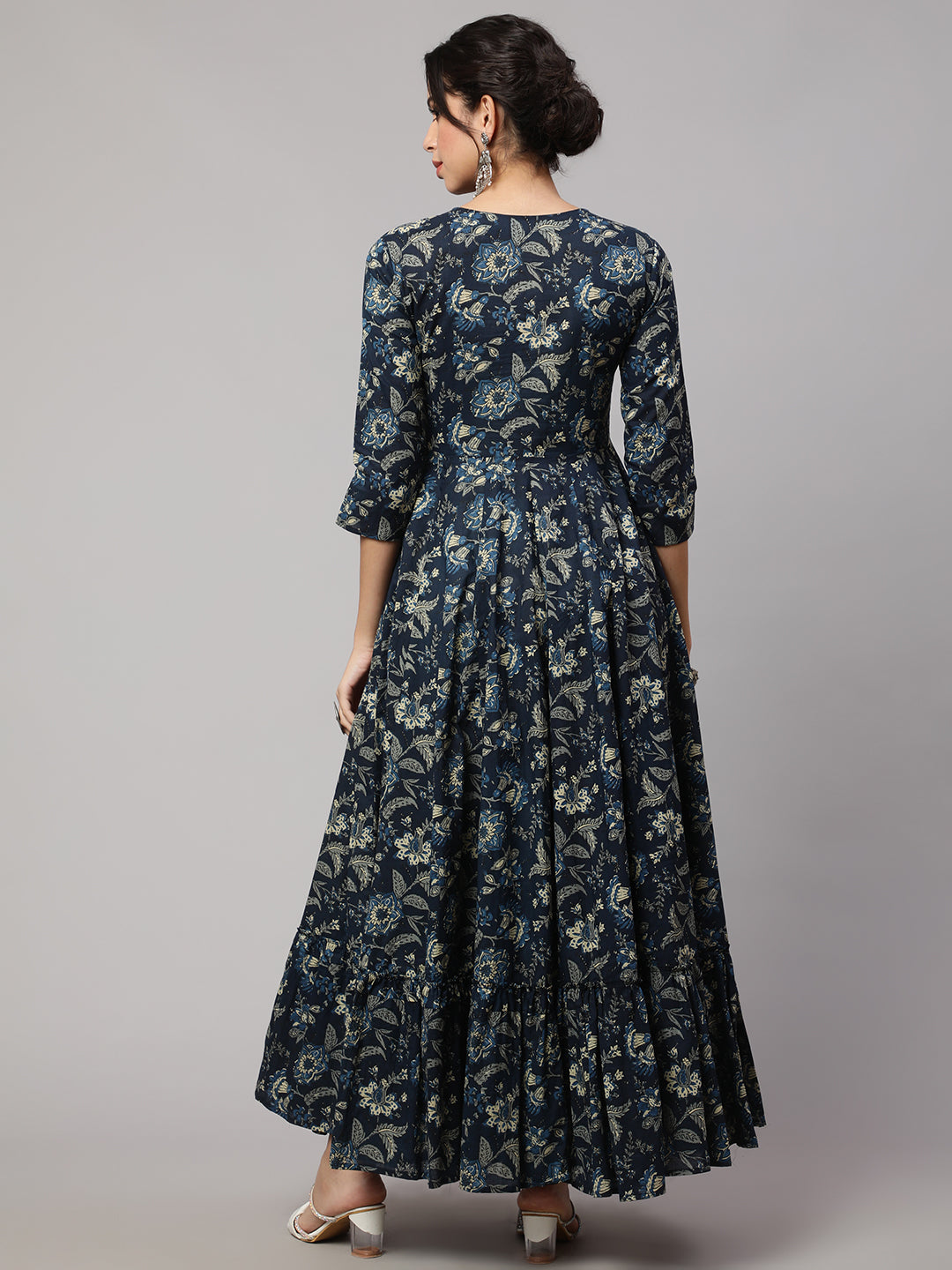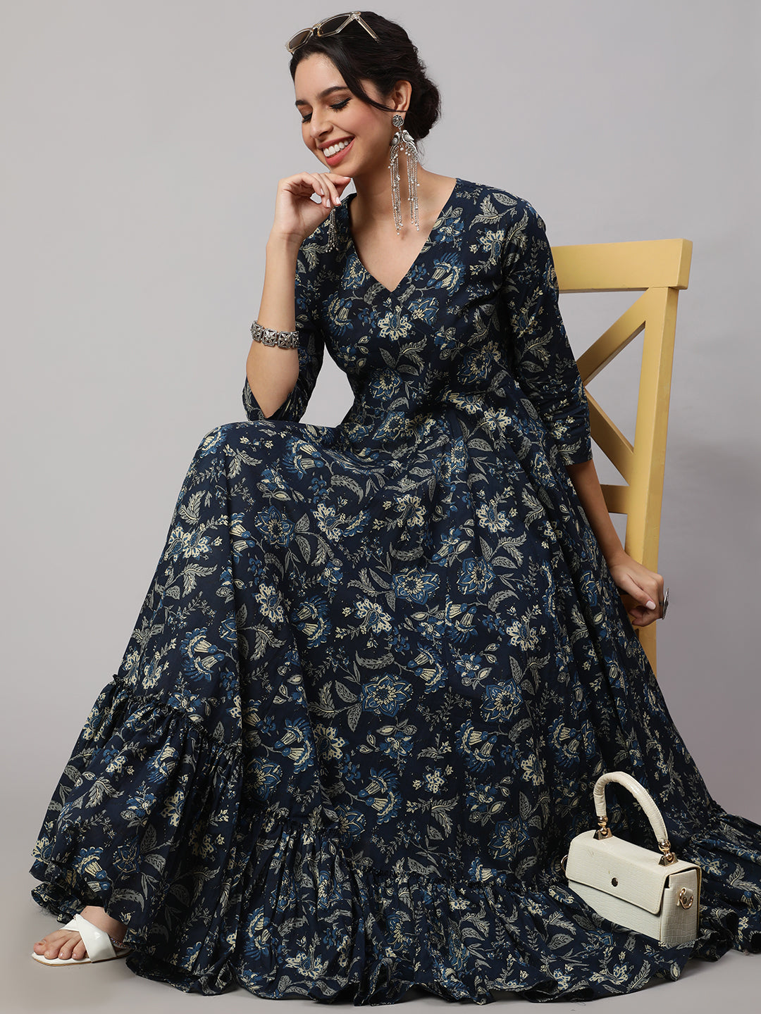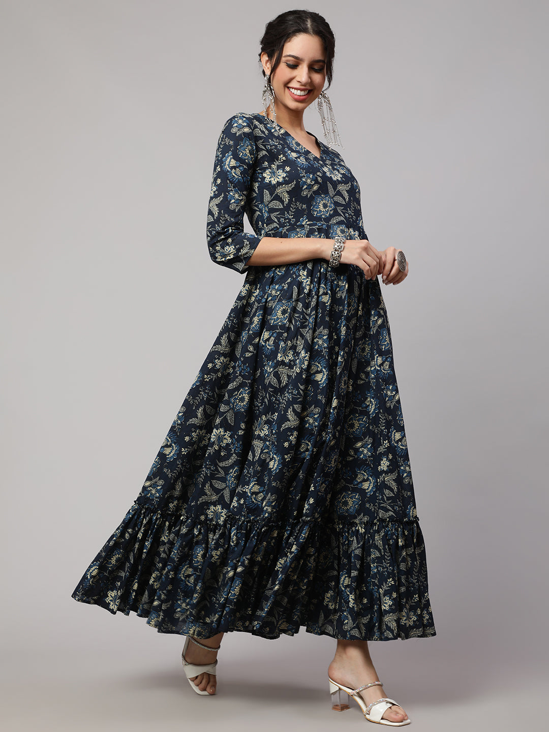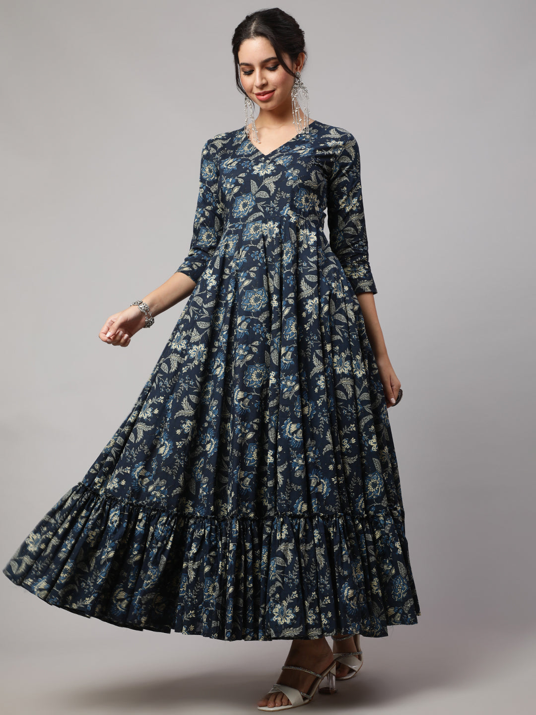 Floral Print V-Neck Flared Kurta