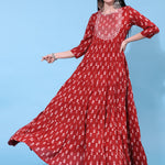 Cotton Full Length Embroidered Flared 3/4 Sleeve Round Neck Dress (Preorder)