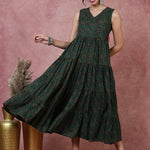 Cotton Calf Length Printed Sleeveless V-Neck Dress (Preorder)