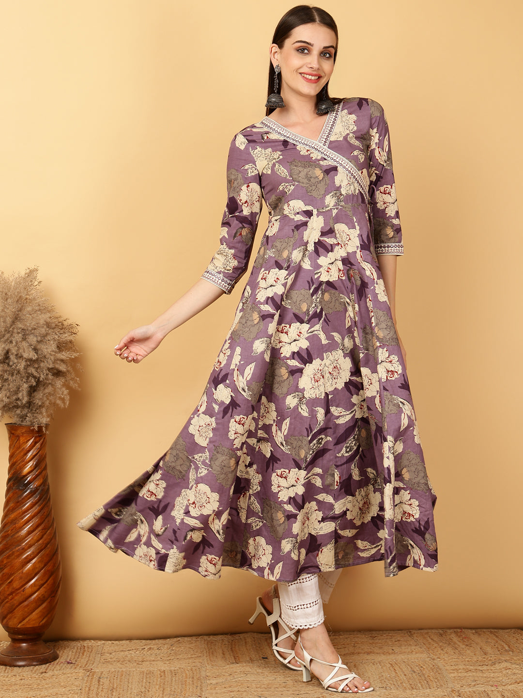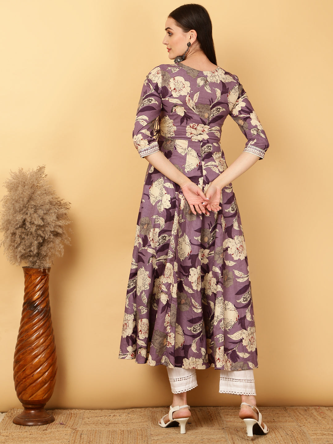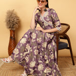 Cotton Calf Length Printed Flared 3/4 Sleeves Round Neck Gown (Preorder)