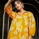Cotton Knee Length Printed 3/4 Sleeve Shirt Collar Flared Dress (Preorder)