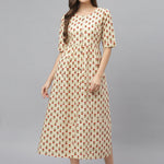 Women's Floral Printed Cotton Midi Flared Dress (Pre-Order)