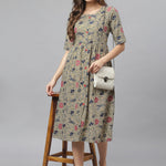 Women's Floral Printed Rayon Midi Flared Dress (Pre-Order)