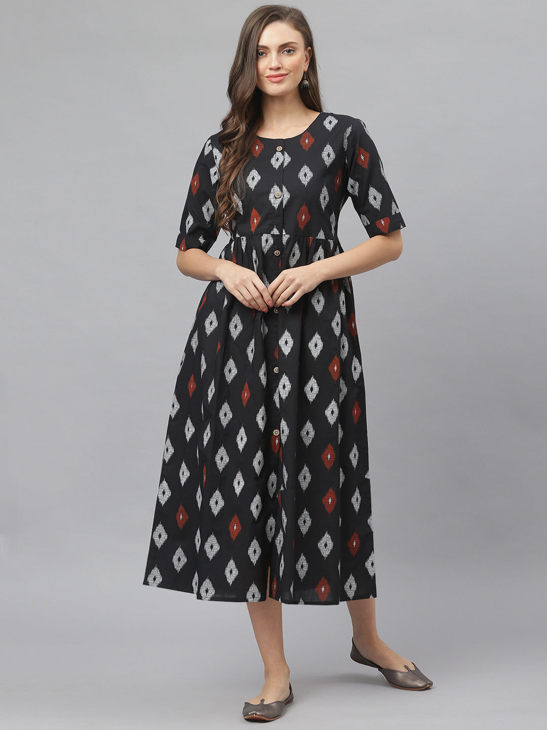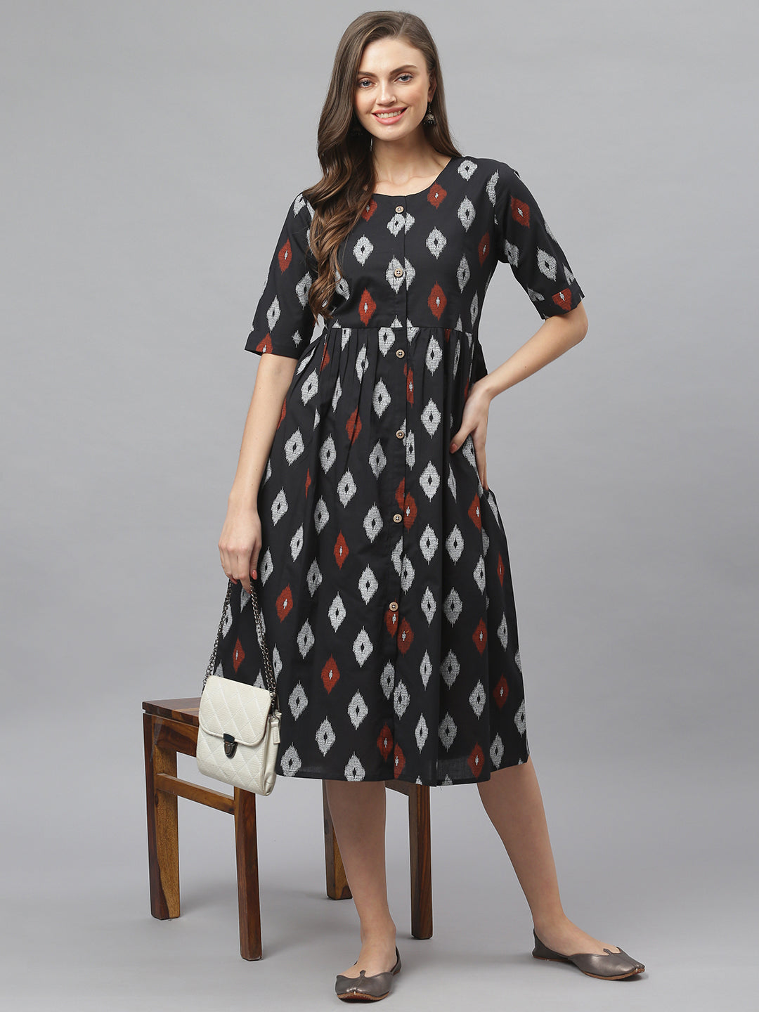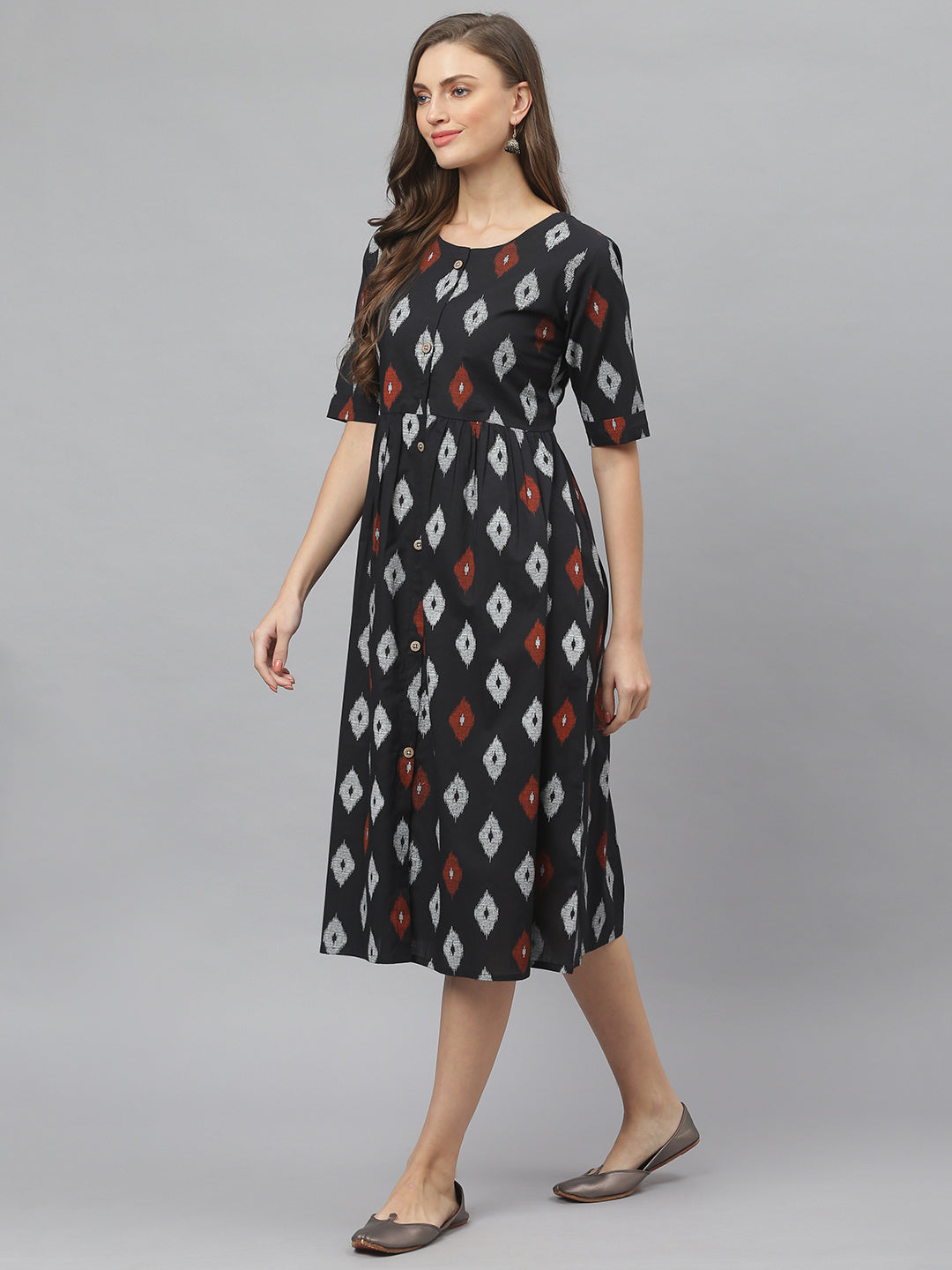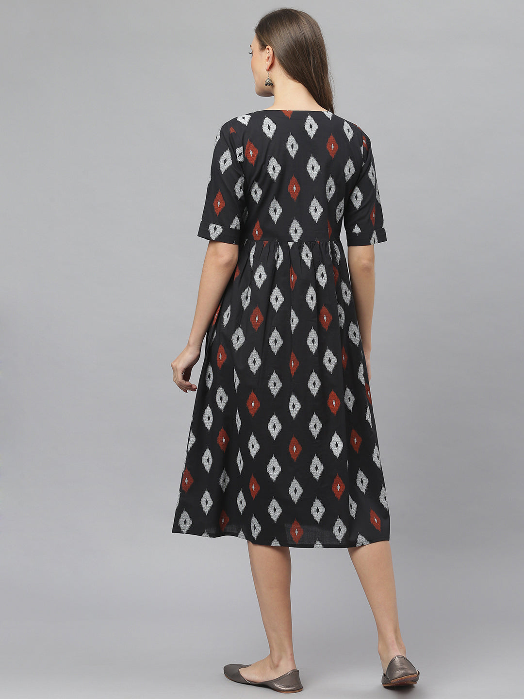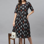 Women's Ikat Print Cotton Midi Flared Dress (Pre-Order)