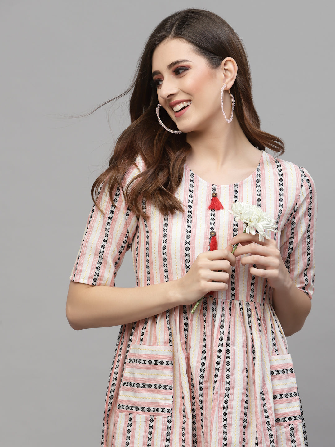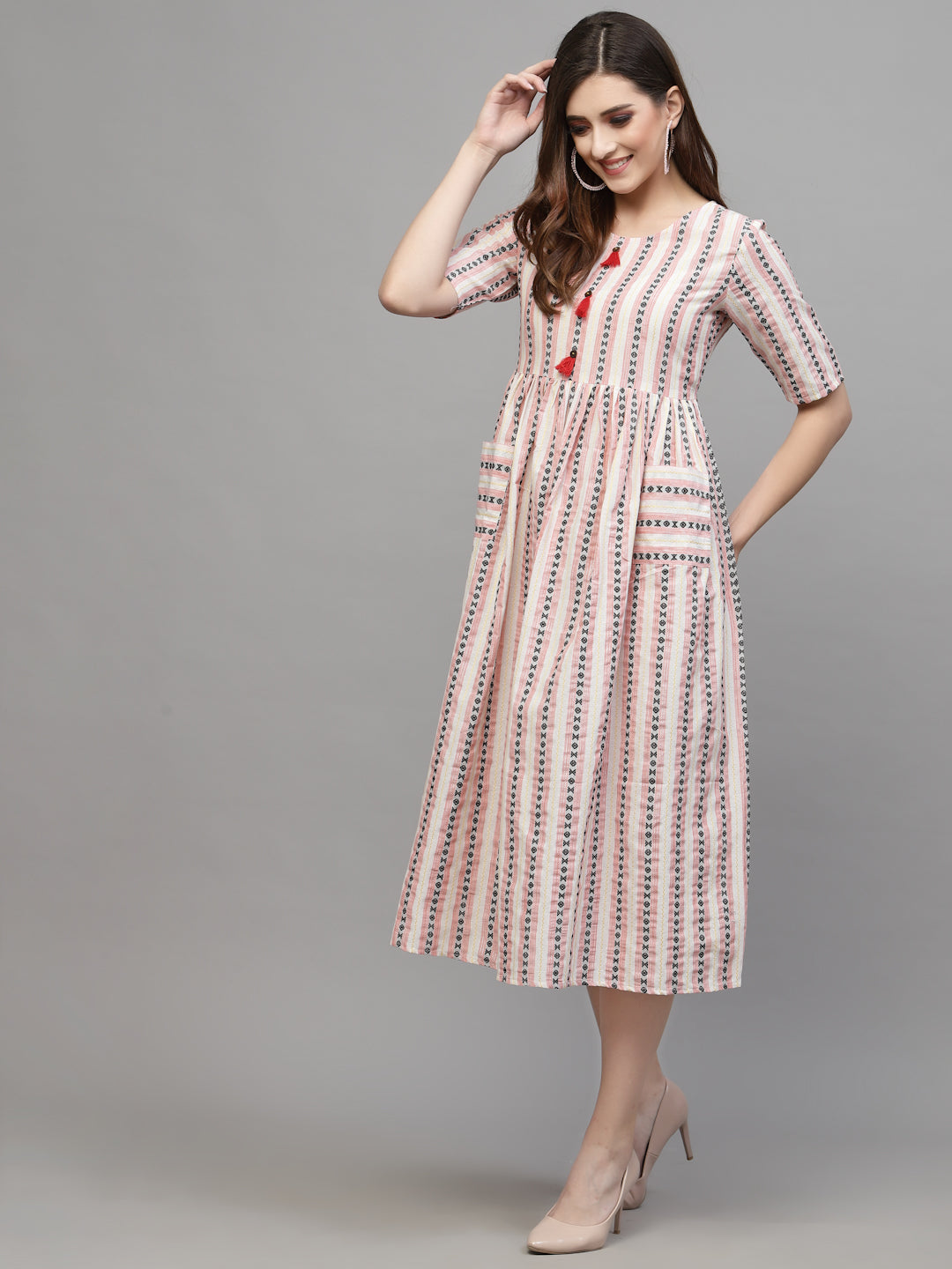 Woven Designed Cotton Blend Ethnic Dress (Pre-Order)