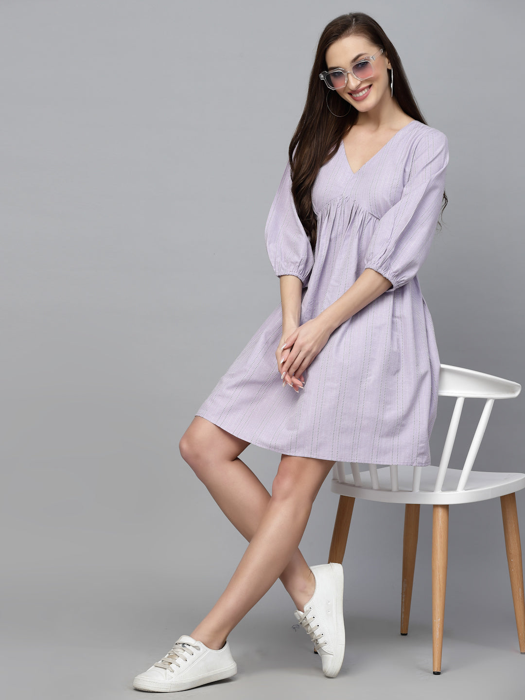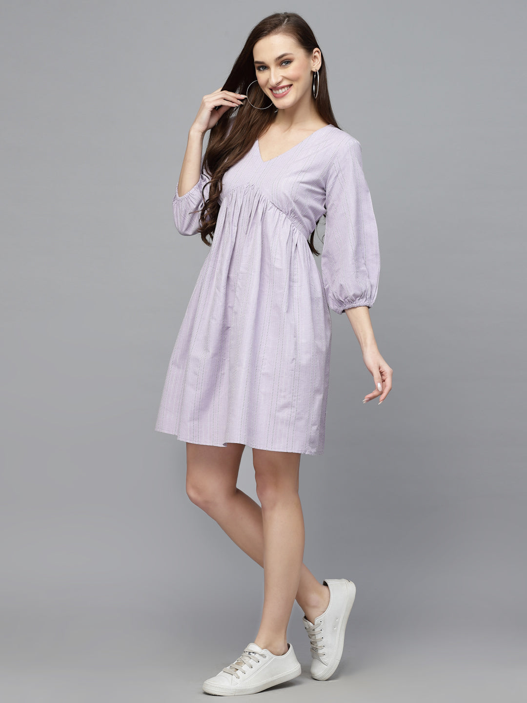 Woven Design Cotton Blend Flared dress (Pre-Order)