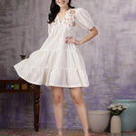 Cream Solid & Embroidered Cotton Flared Dress (Pre-Order)