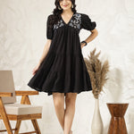 Black Solid & Embroidered Rayon Flared Dress (Pre-Order)