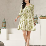 Green Floral Printed Rayon Flared Dress (Pre-Order)