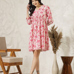 Pink Floral Printed Rayon Flared Dress (Pre-Order)