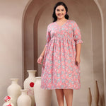 Plus Size Pestel Pink Ethnic Printed Cotton Flared Dress (Pre-Order)