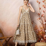 Beige Ikat Printed Rayon Tiered Dress (Pre-Order)