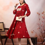Maroon Bandhej Printed & Embroidered Rayon Maxi Dress (Pre-Order)