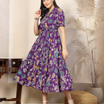 Violet Tropical Printed Rayon Tiered Dress (Pre-Order)