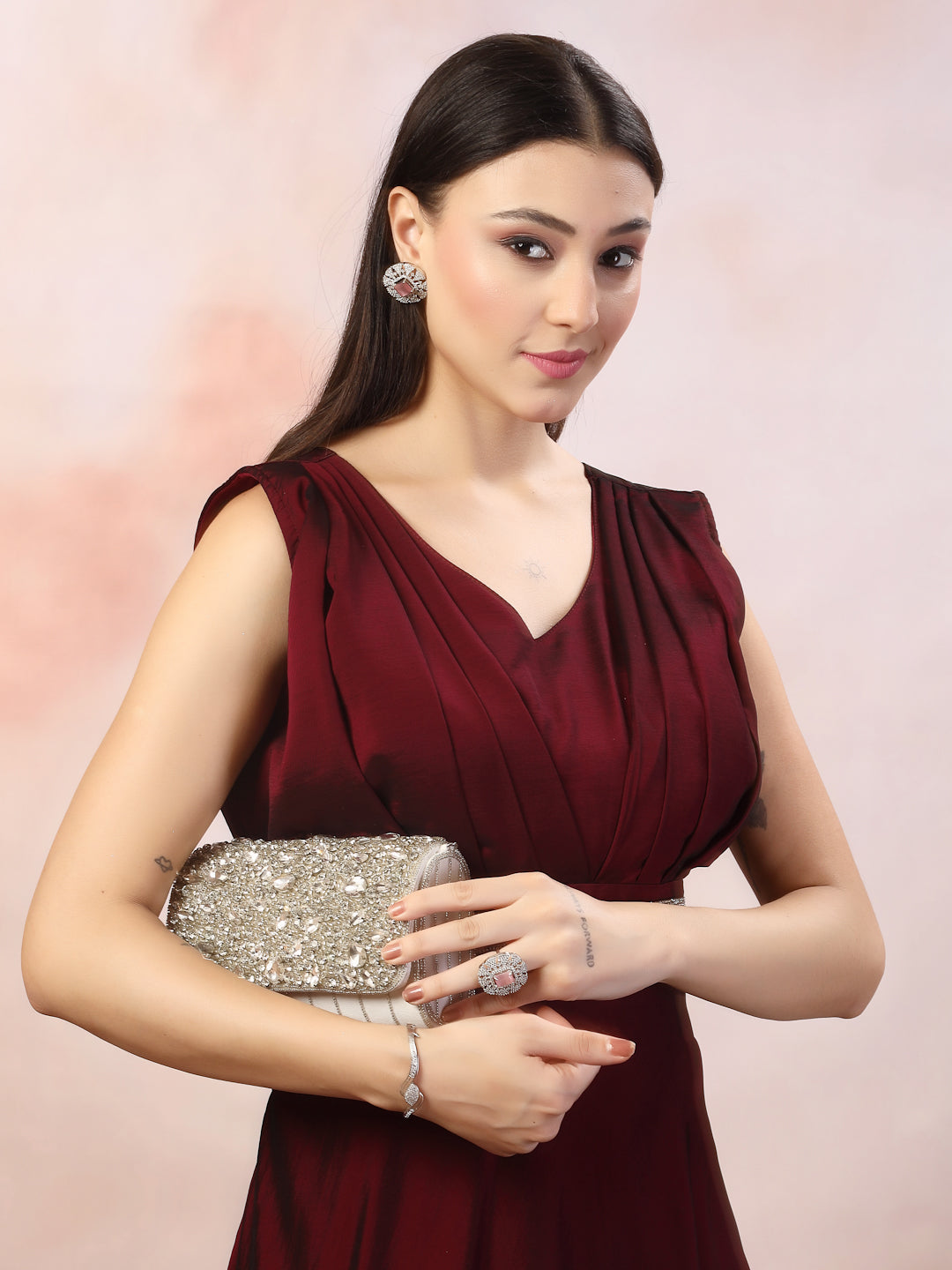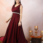 Wine Solid Party Wear Satin Gown (Pre-Order)