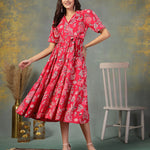 Pink Tropical Printed Rayon Tiered Dress (Pre-Order)