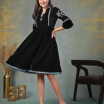 Black Solid & Embroidered Velvet Flared Dress (Pre-Order)