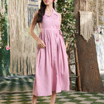 Pink Self Design Crepe Pleated Dress (Pre-Order)
