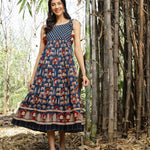 Blue Ethnic Printed Cotton Tiered Dress (Pre-Order)