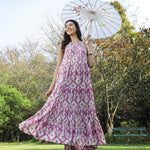 Lavender Ikat Printed Rayon Tiered Dress (Pre-Order)