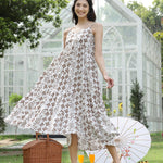 Brown Printed Cotton Flared Dress (Pre-Order)
