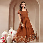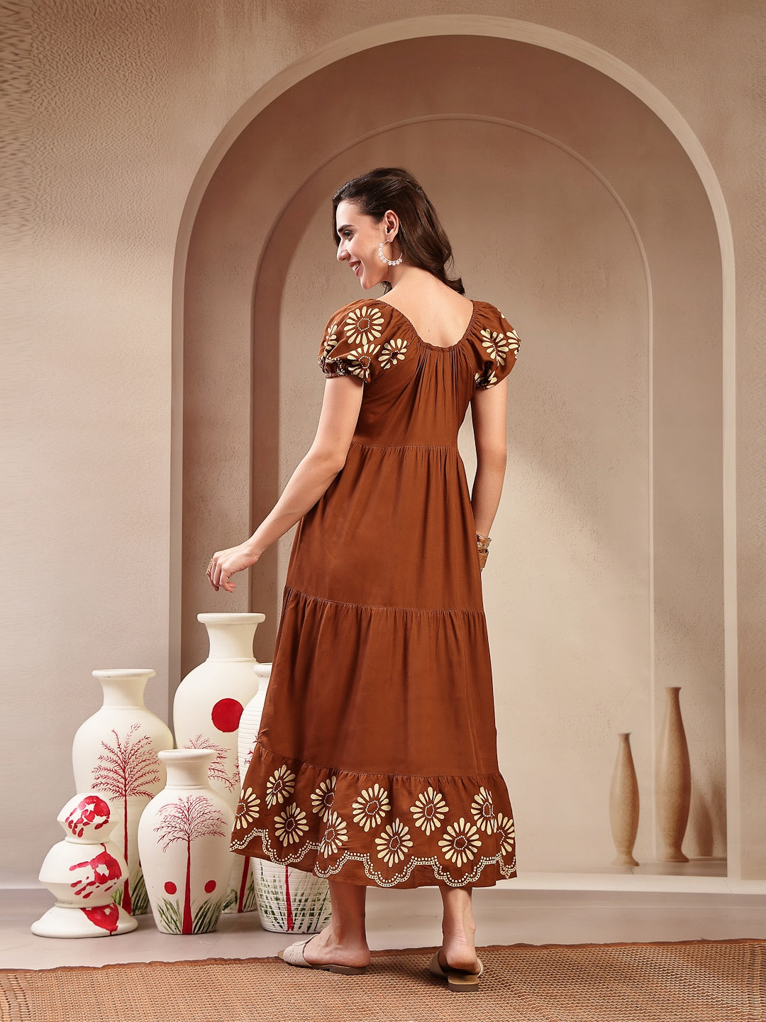 Brown Solid Rayon Tiered Dress (Pre-Order)