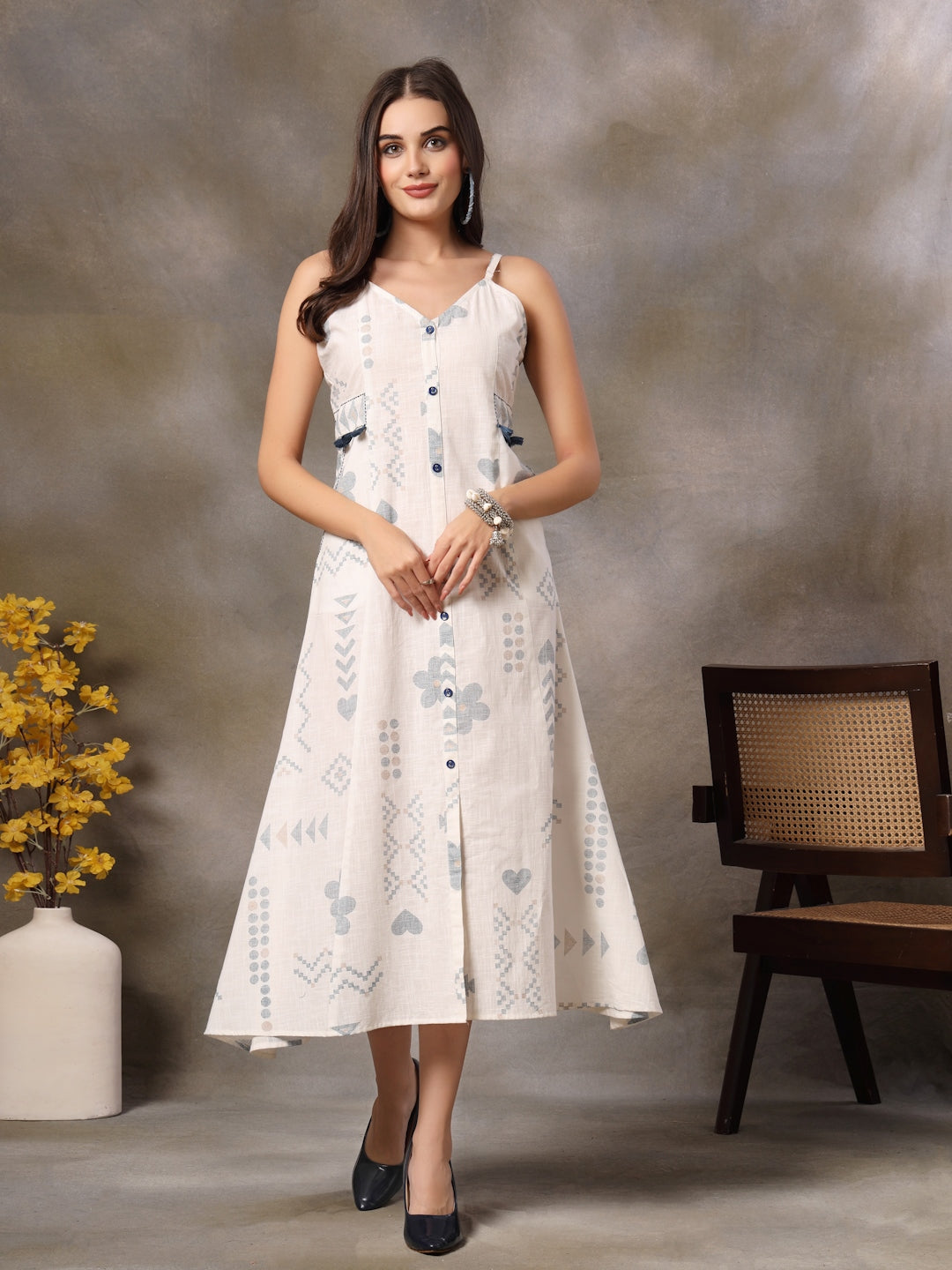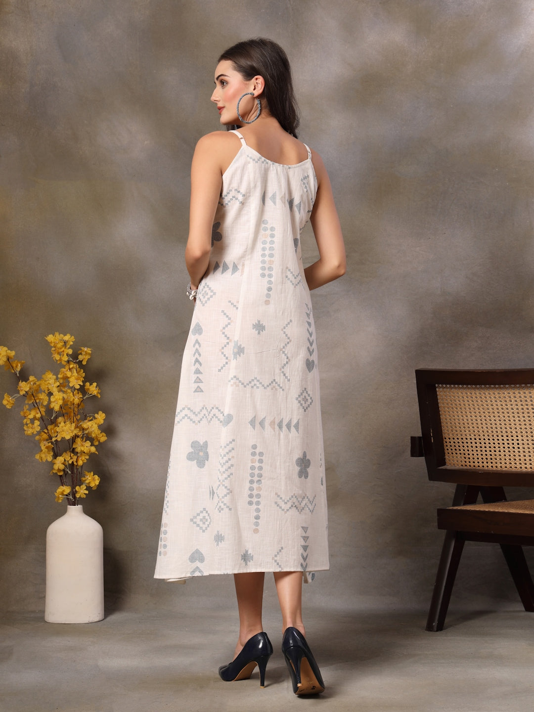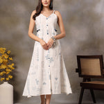White Abstract Printed Cotton Blend A-Line Dress (Pre-Order)