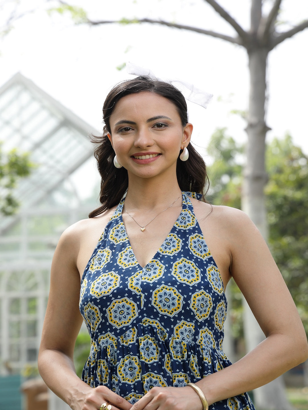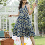 Blue Printed Cotton Tiered Dress (Pre-Order)