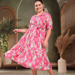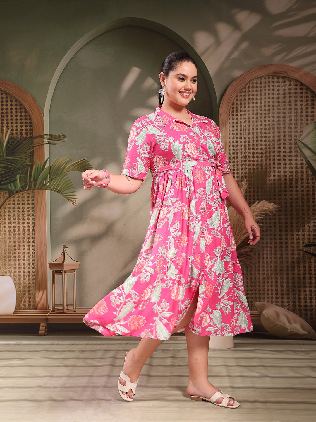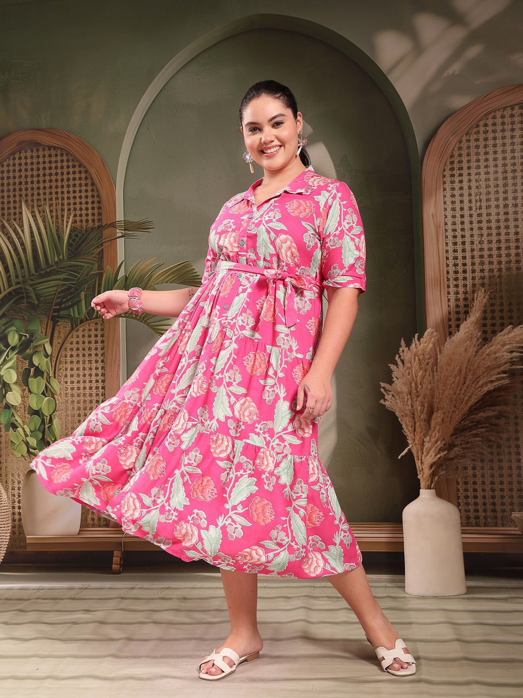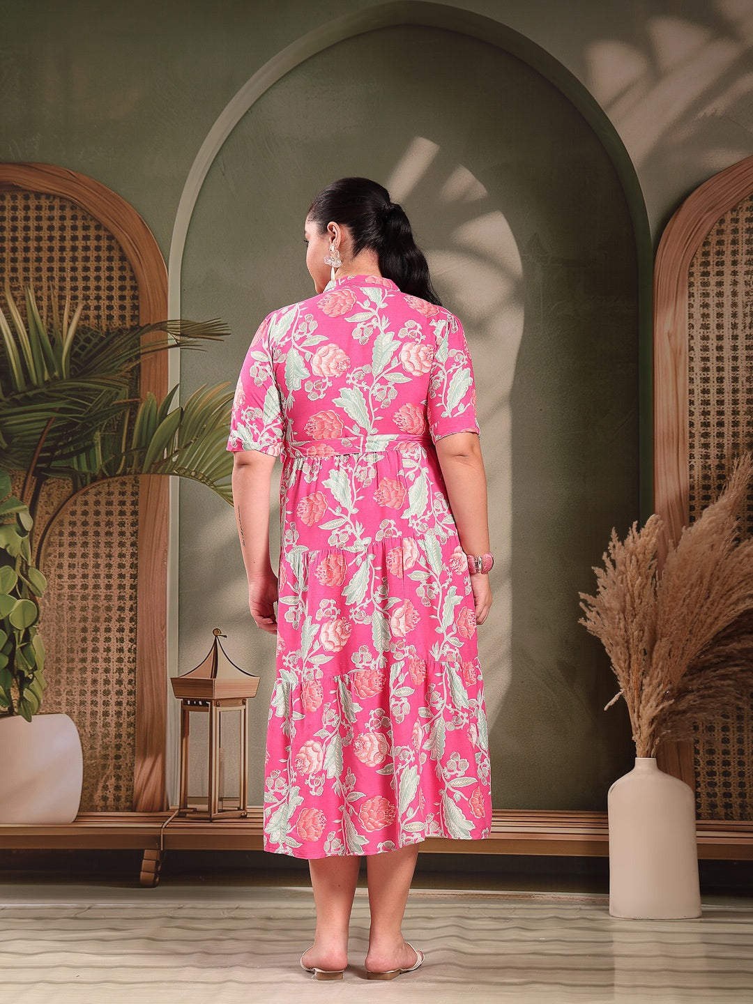 Plus Size Pink Floral Printed Rayon Tiered Dress (Pre-Order)