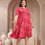 Plus Size Pink Tropical Printed Rayon Tiered Dress (Pre-Order)