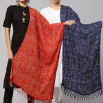 Blue Bandhini And Red Bandhani Dupatta Combo, Pack Of Two