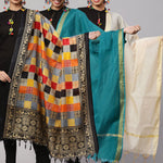 Multi Printed And Solid Beige With Blue Dupatta Combo, Pack Of Three