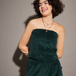 Women Emerald Corduroy Off Shoulder Crop Top