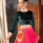 Emerald Green Velvet Crop Top, in Velvet fabric, Unlined, Crop Length, Comfort Fit, Zipper Closure, Straight Hemline and features Back Cut Out Detail