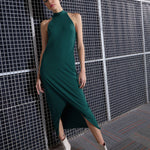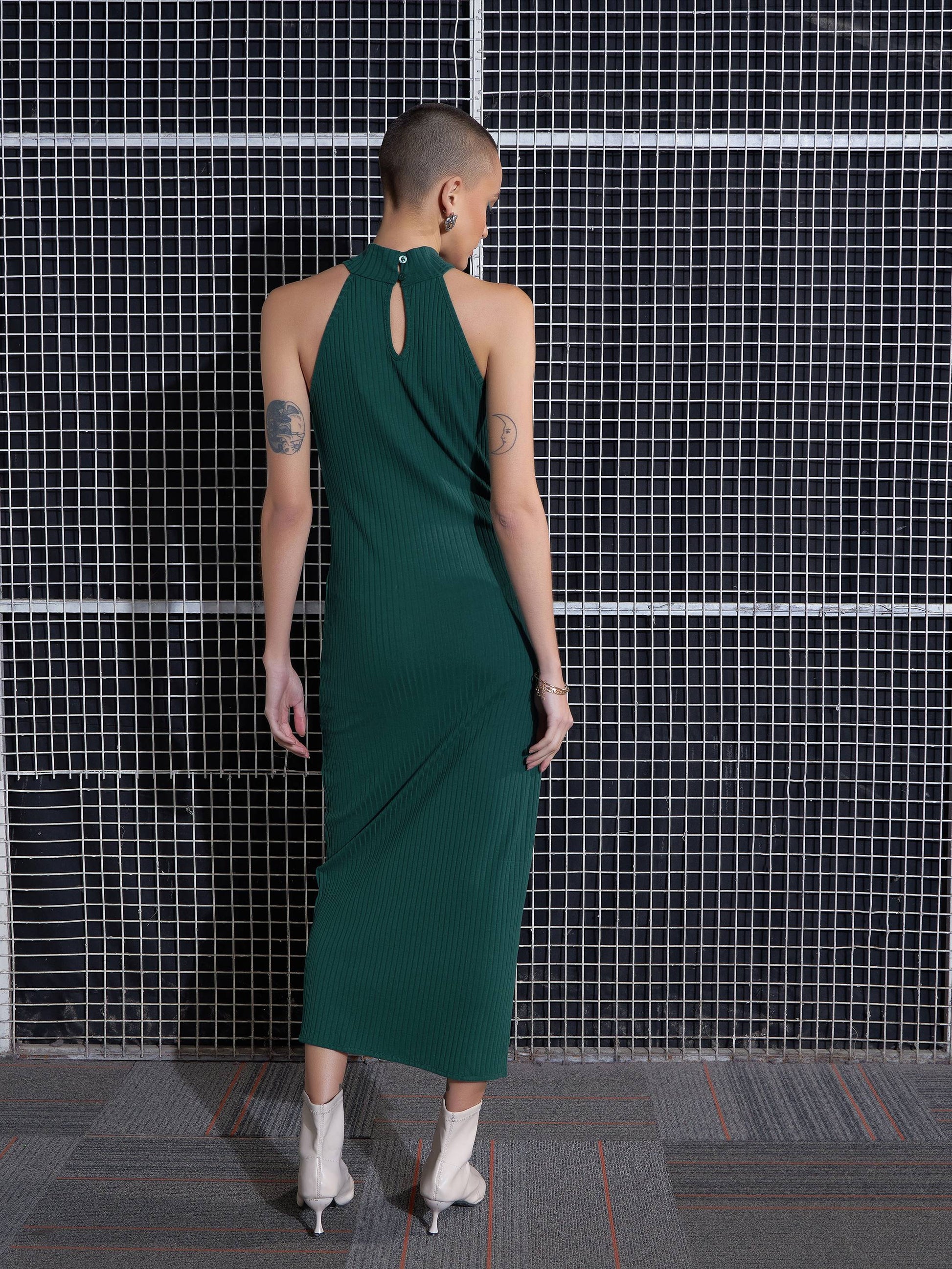Women Emerald Rib Front Slit Bodycon Midi Dress