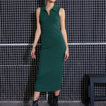 Women Emerald Rib Polo Neck Sleeveless Bodycon Midi Dress